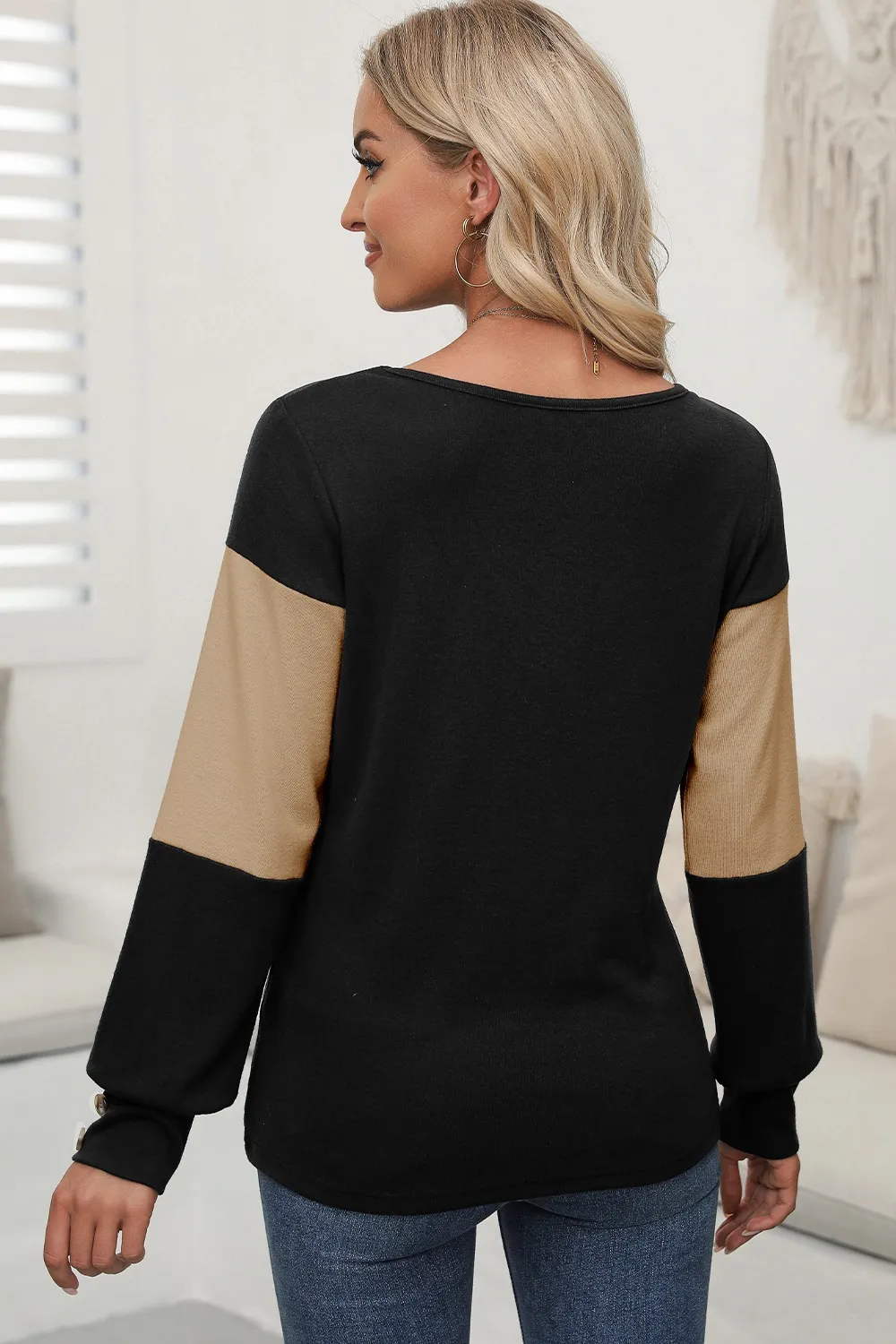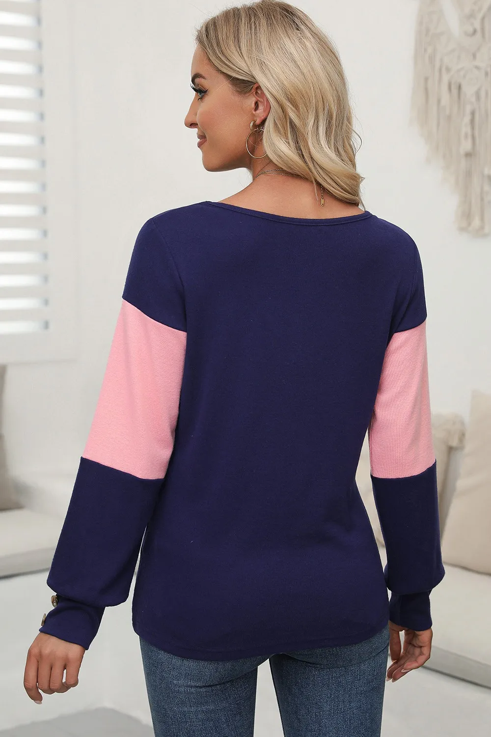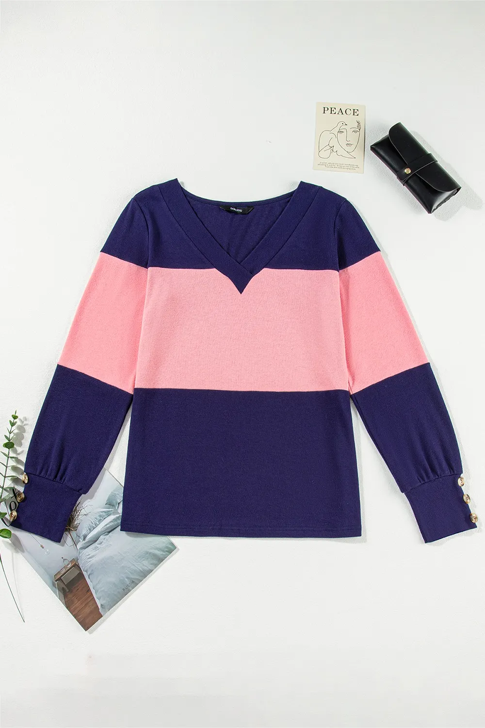 Color Block V-Neck Long Sleeve Top