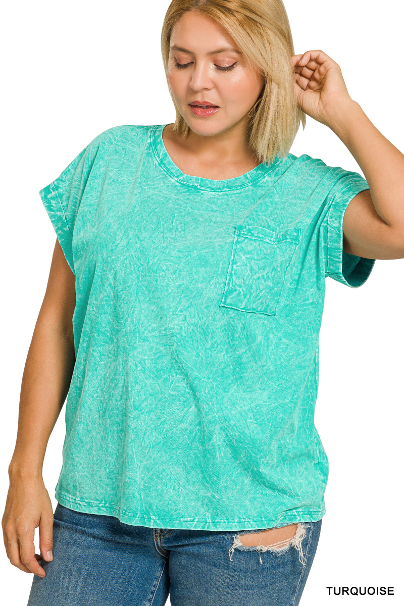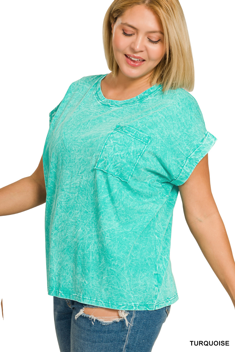 Zenana Full Size Crinkle Washed Round Neck Folded Short Sleeve Tee Plus Size