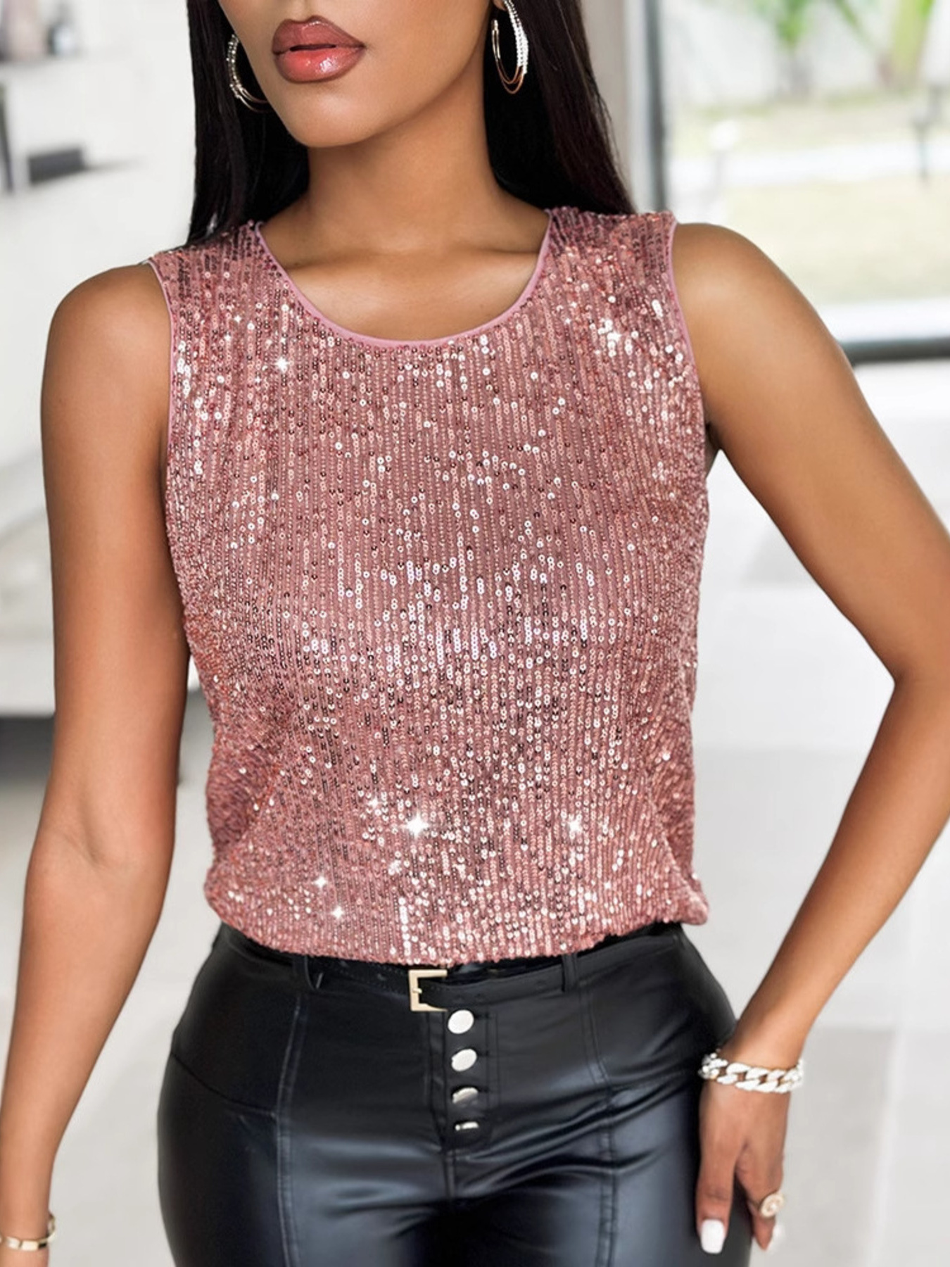 Sequin Round Neck Tank Top