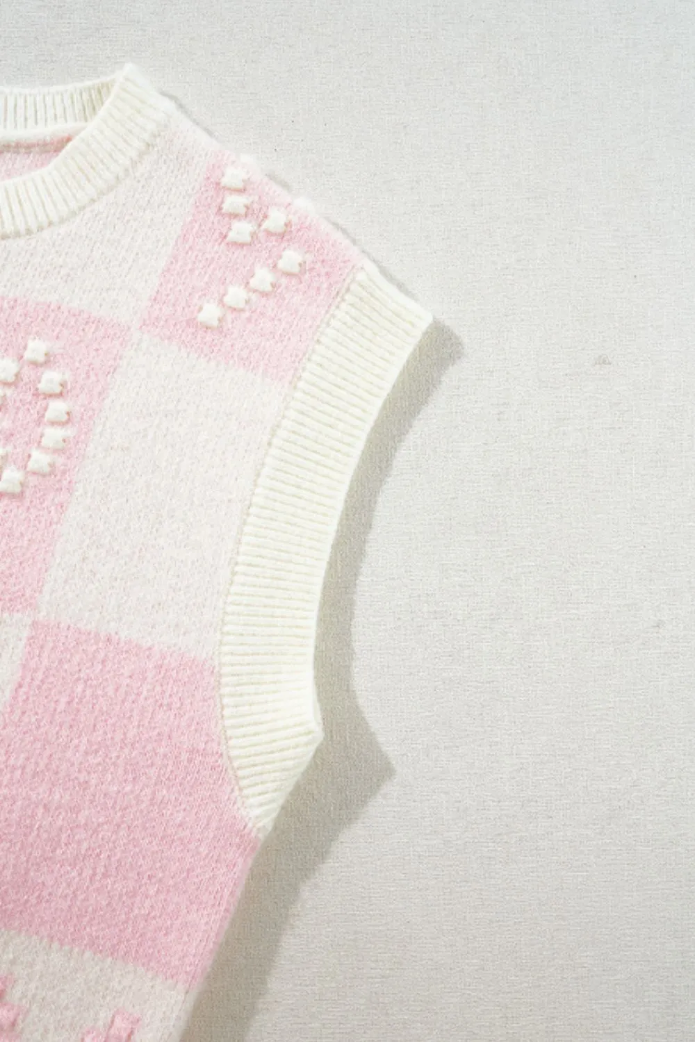 Bow Checkered Round Neck Sweater Vest