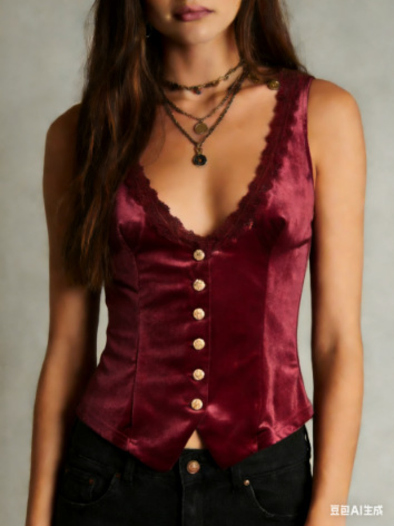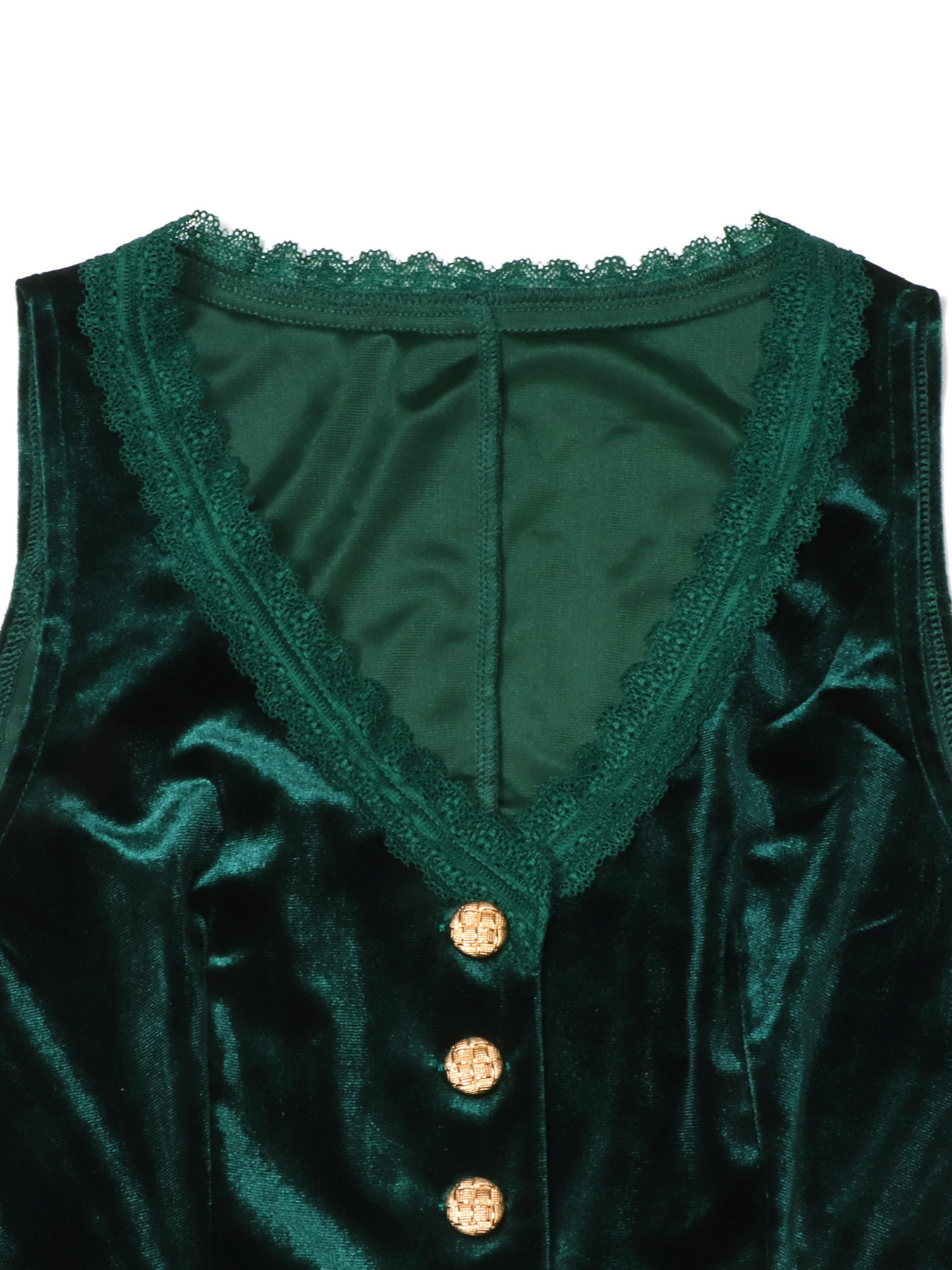 Velvet Lace Trim Button-Down Vest