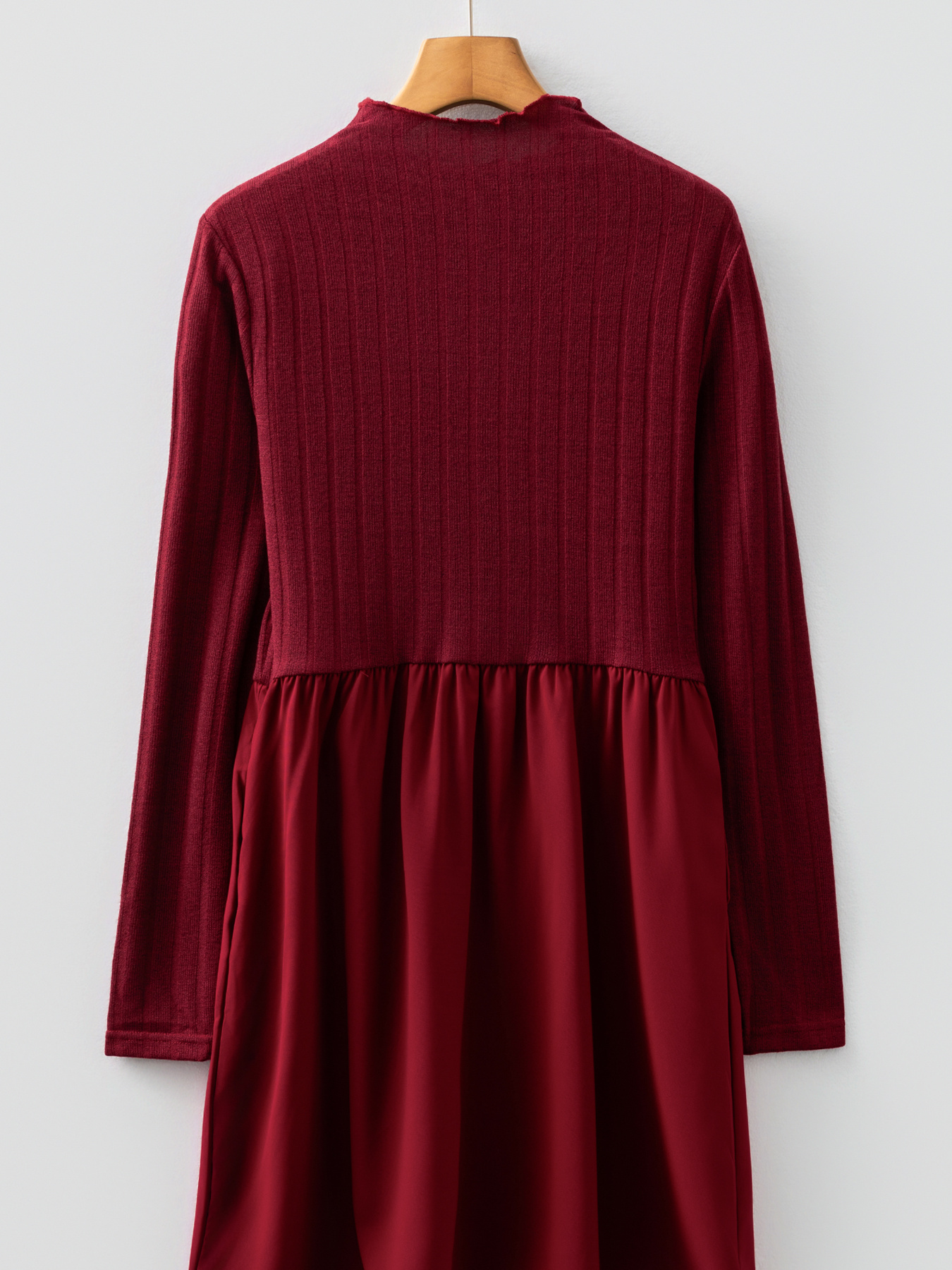 Frilled Neck Ribbed Knit Patchwork Long Sleeve Mini Dress