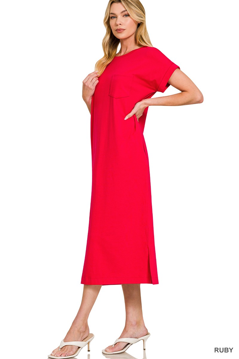 Zenana Round Neck Short Sleeve Midi Dress