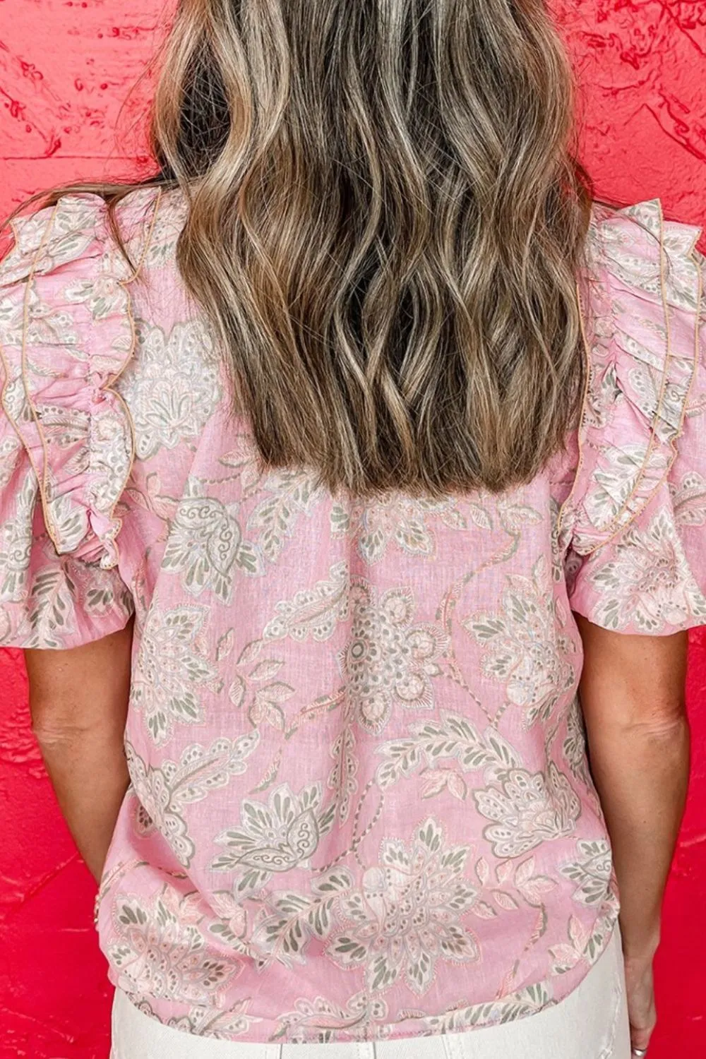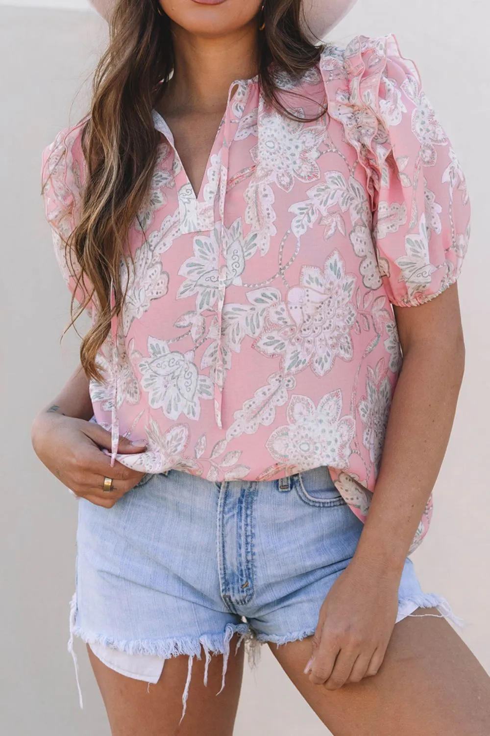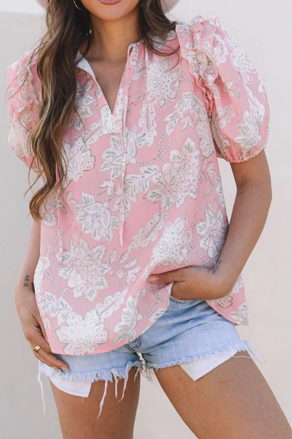 Floral Tie Neck Puff Sleeve Blouse
