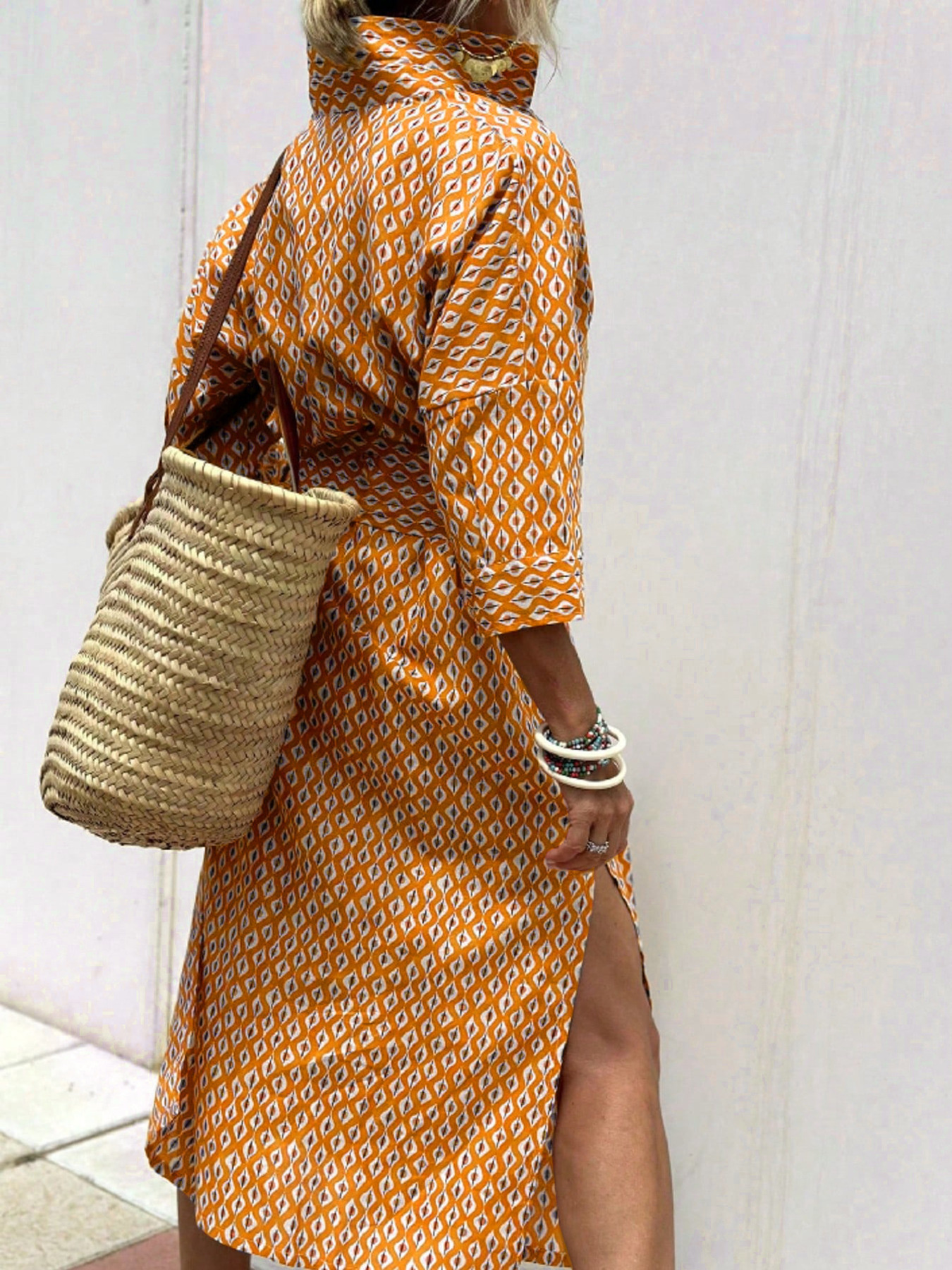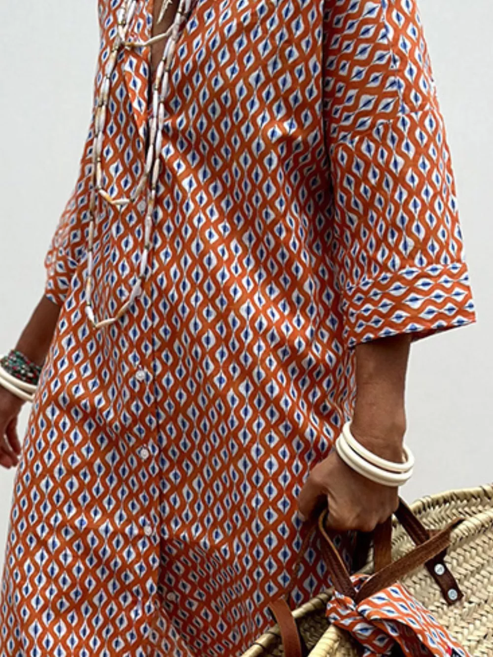 Full Size Printed Button-Down Midi Dress Plus Size