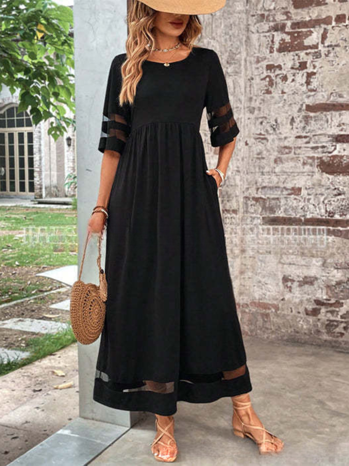Full Size Round Neck Half Sleeve Dress Plus Size