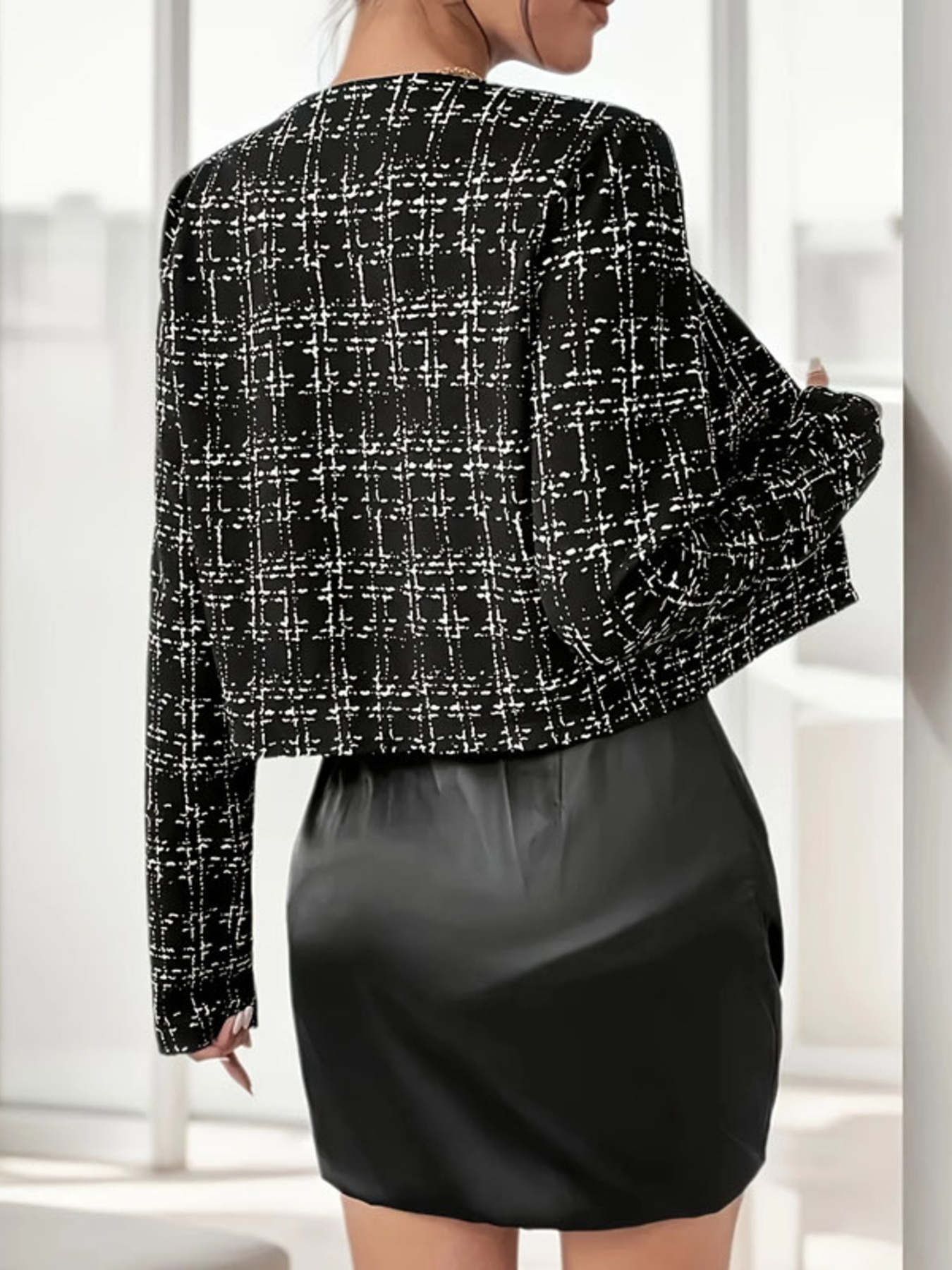 Tweed Button Up Cropped Outerwear