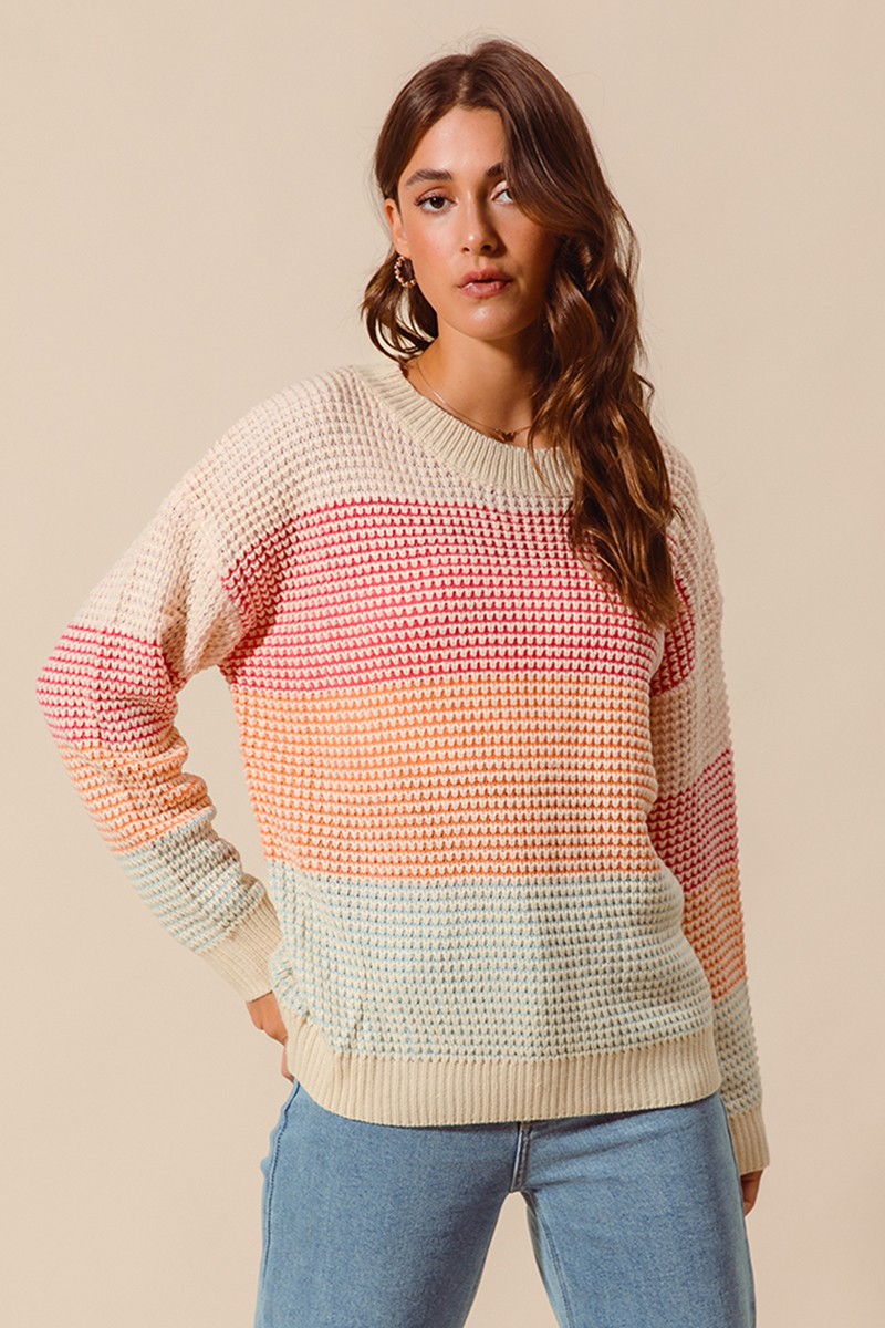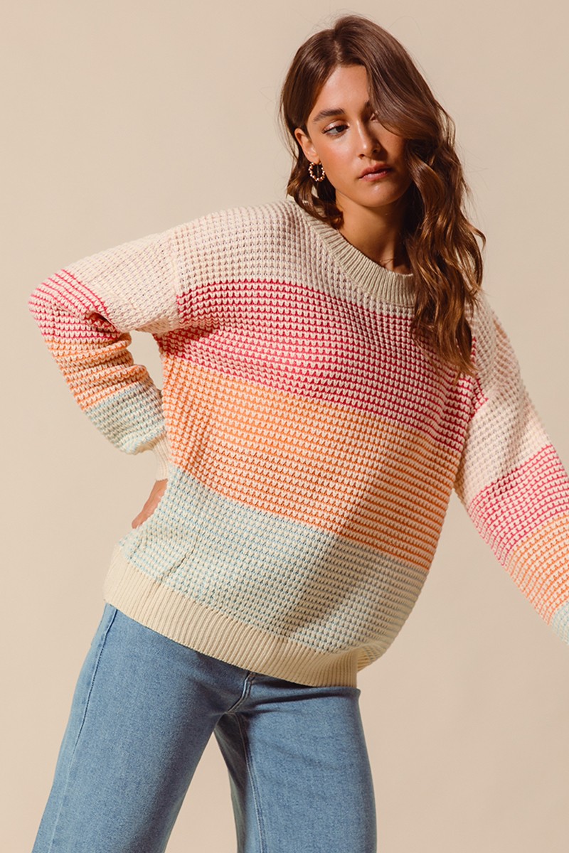 So Me Multi Color Block Long Sleeve Sweater