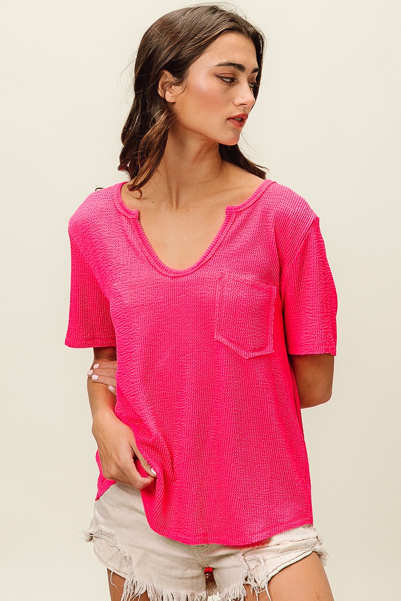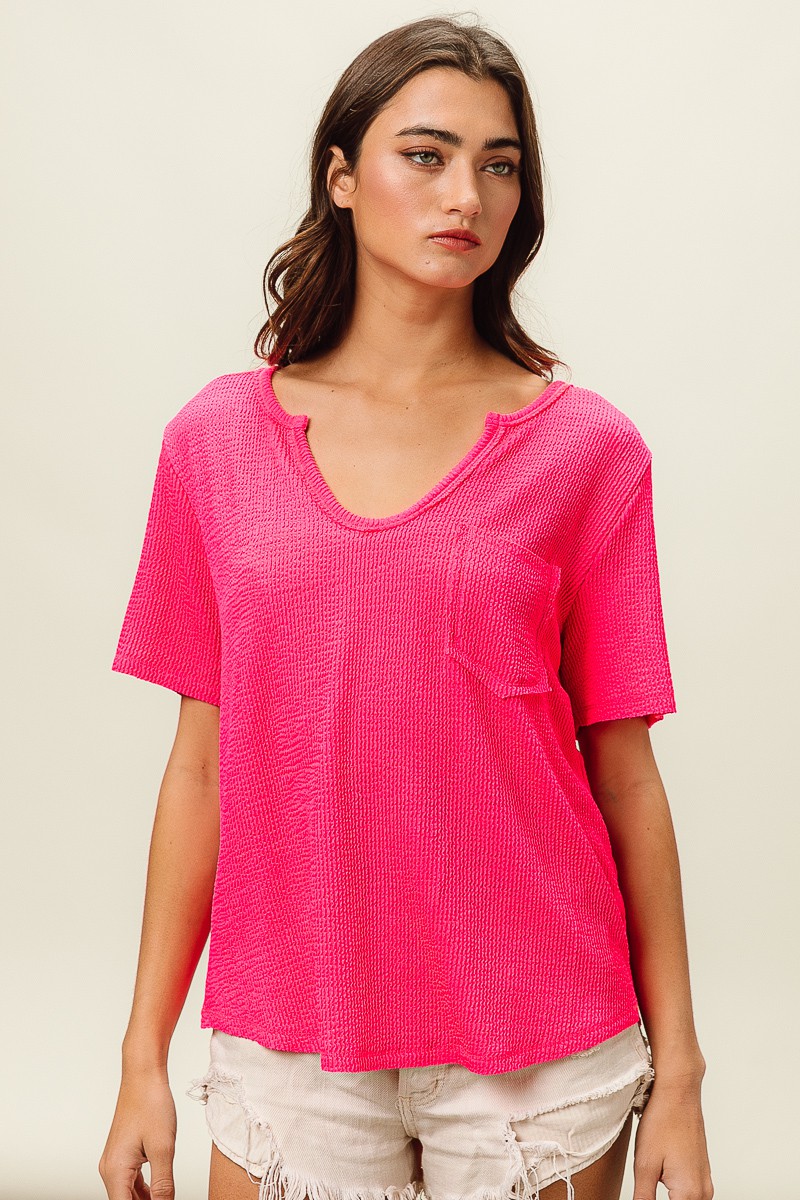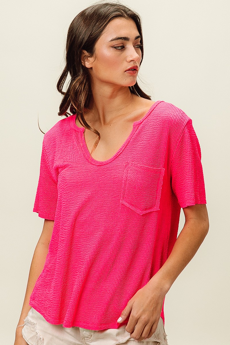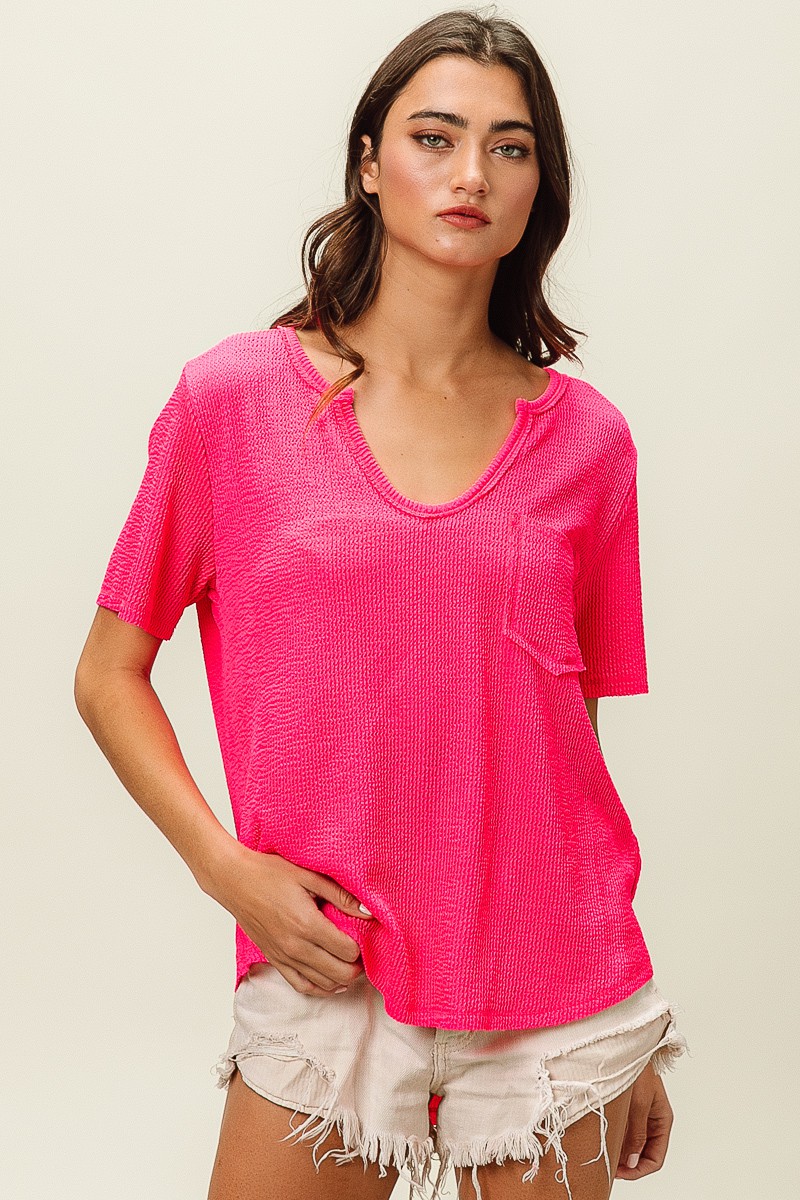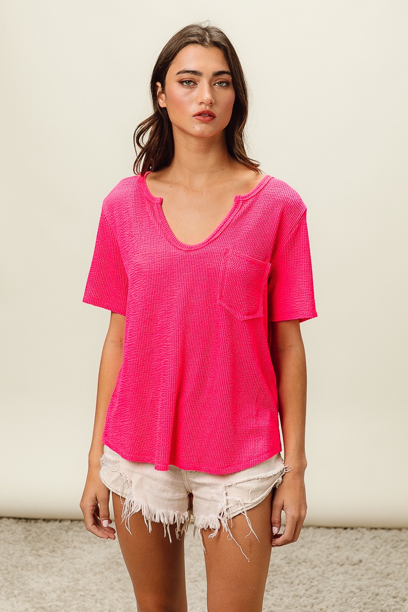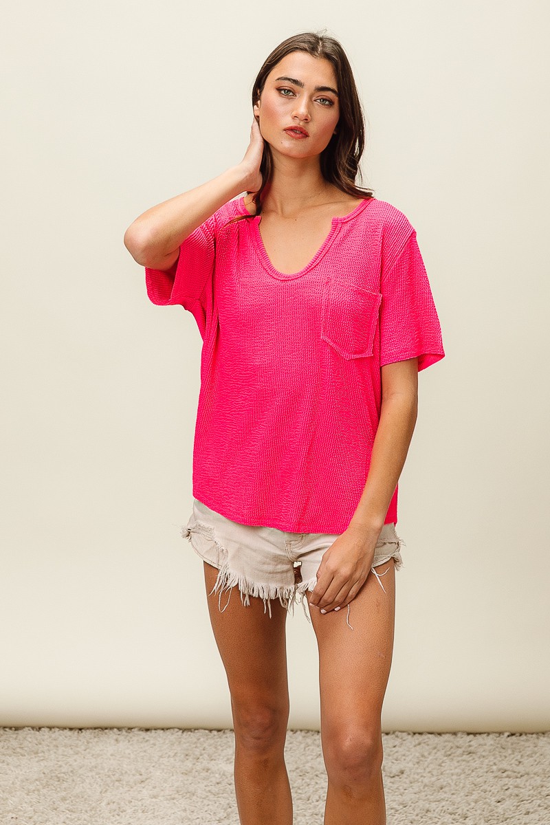 Bibi Waved Rib U Neck Top With Front Pocket