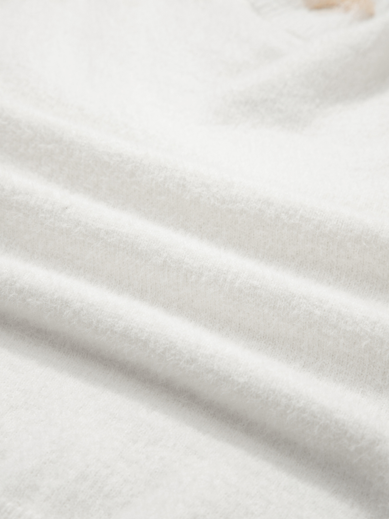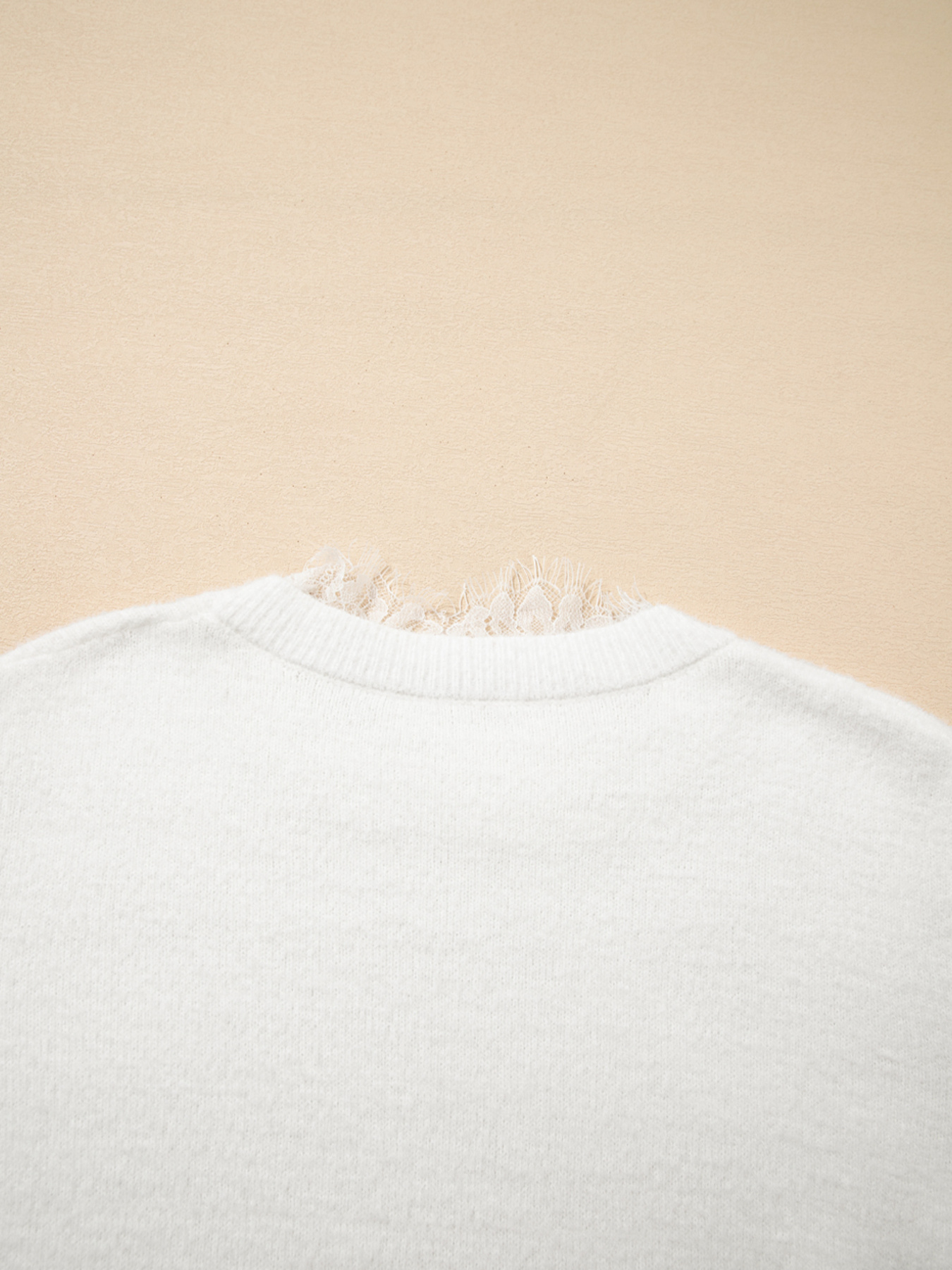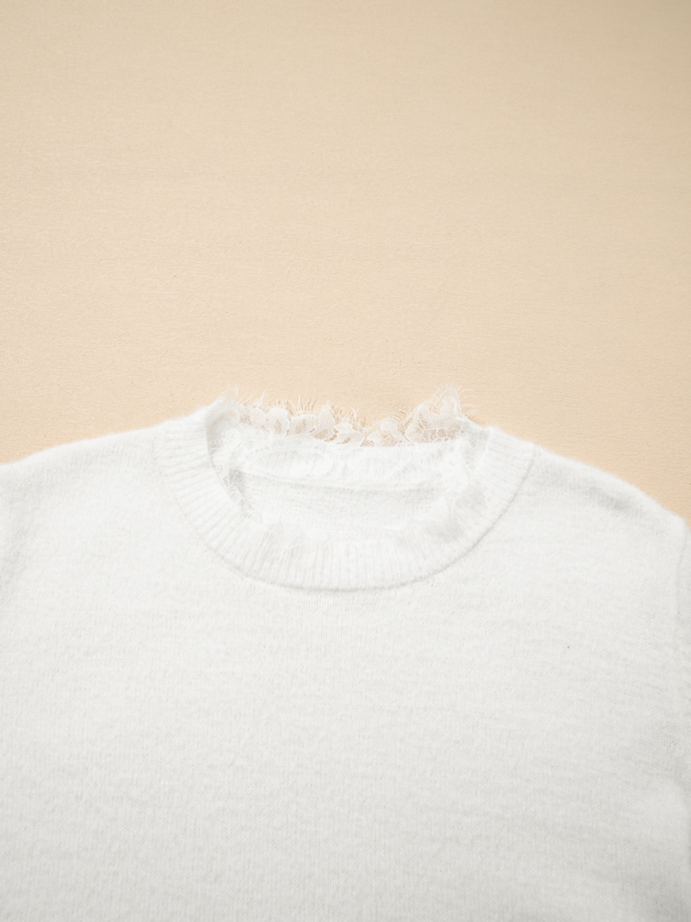 Lace Sleeve Patchwork Faux Two-Piece Fuzzy Sweater