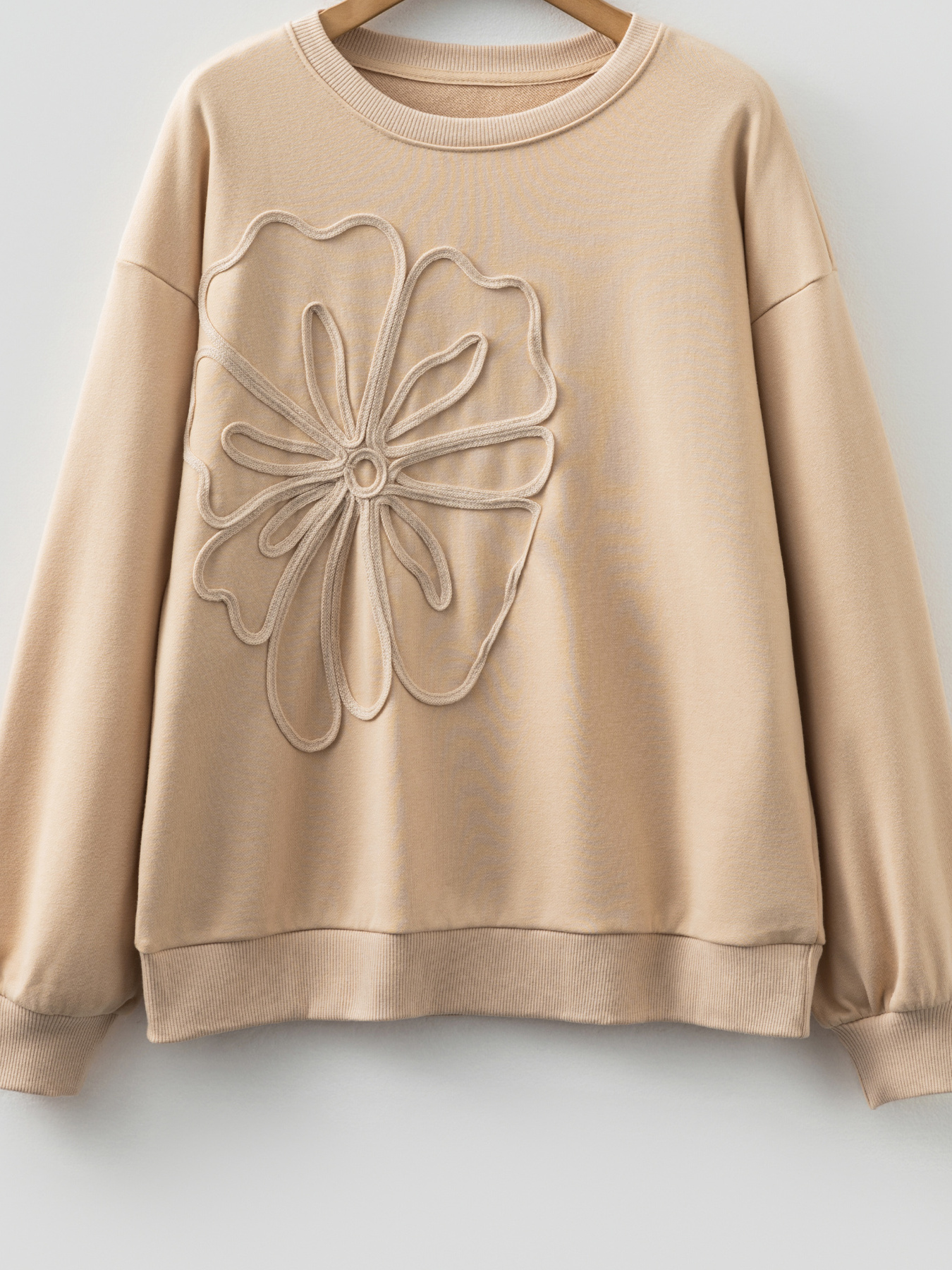 Embroidered Flower Pattern Drop Shoulder Sweatshirt