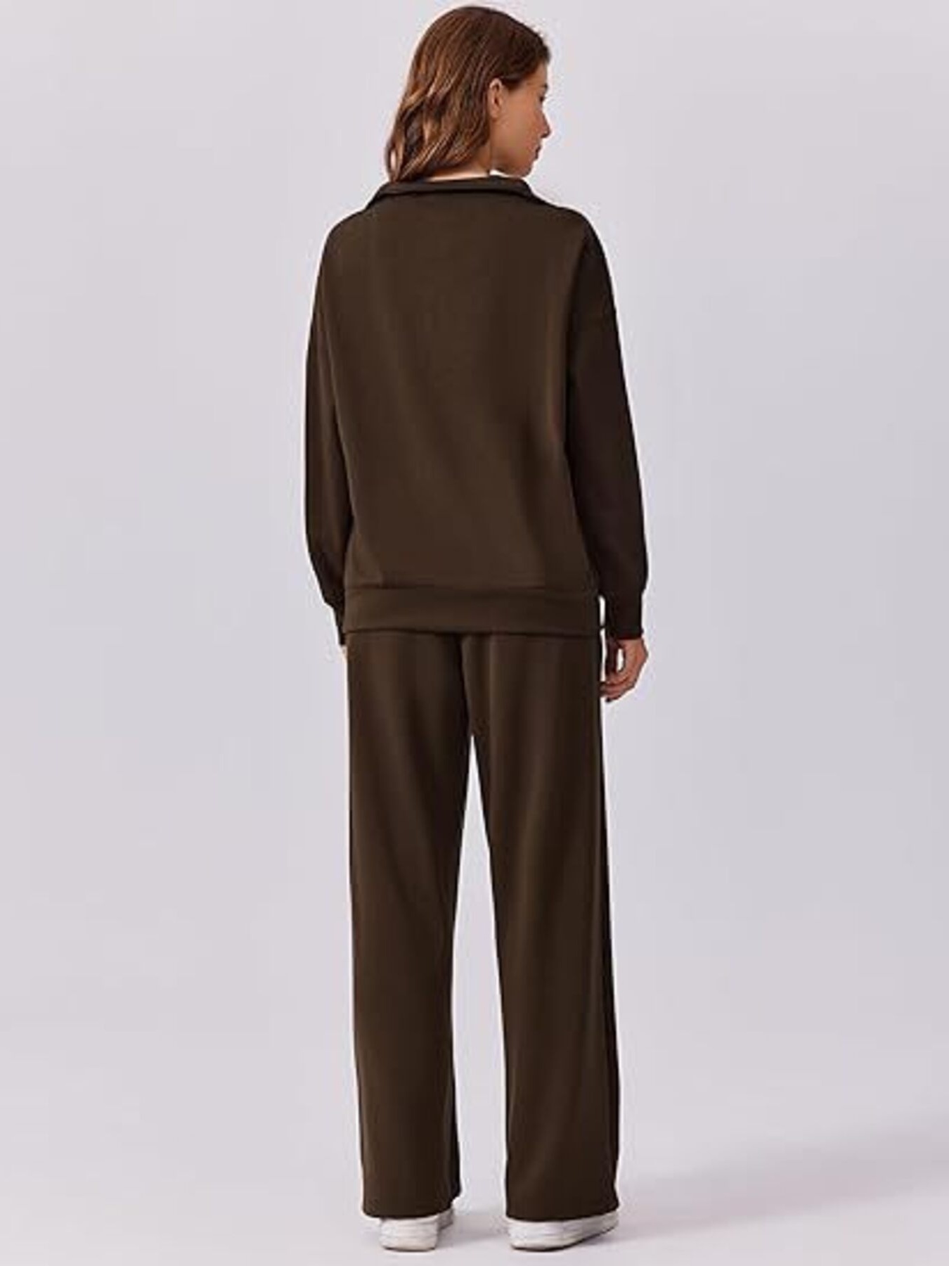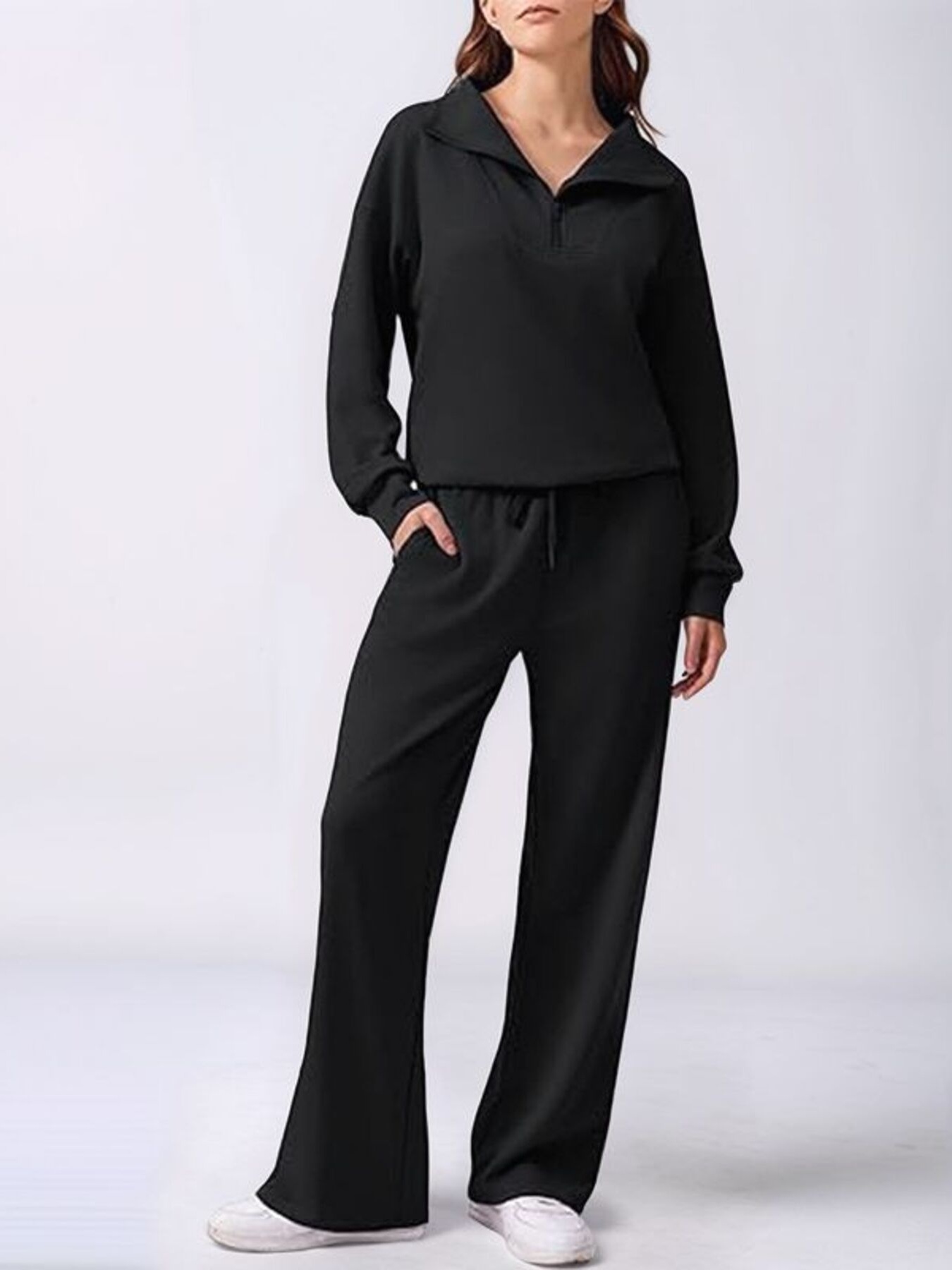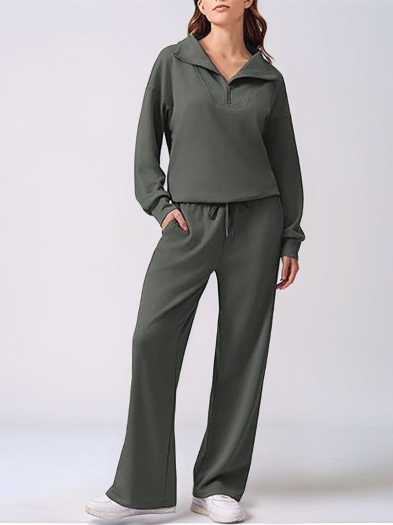 Relaxed Fit Quarter-Zip Top And Pants Set