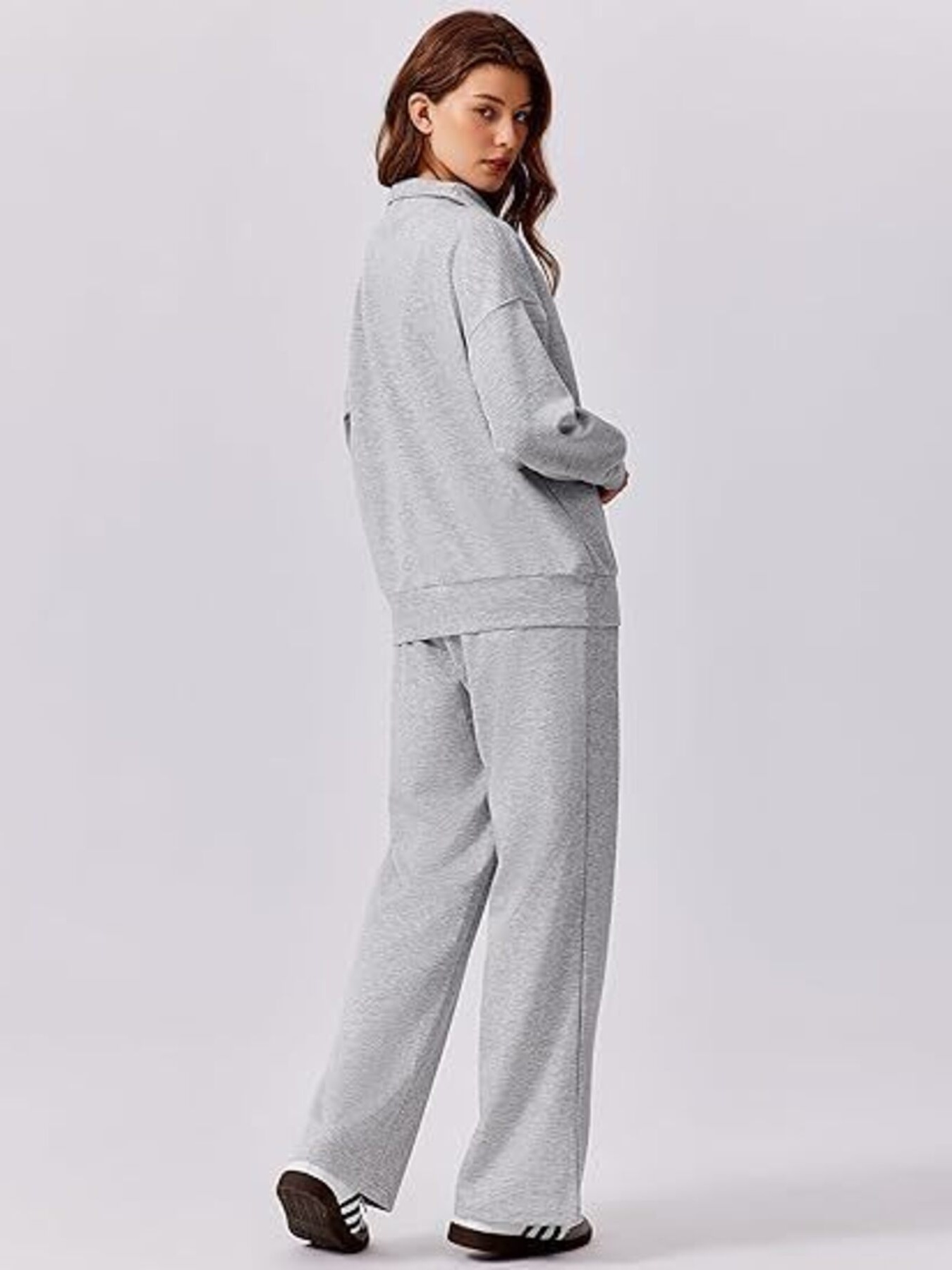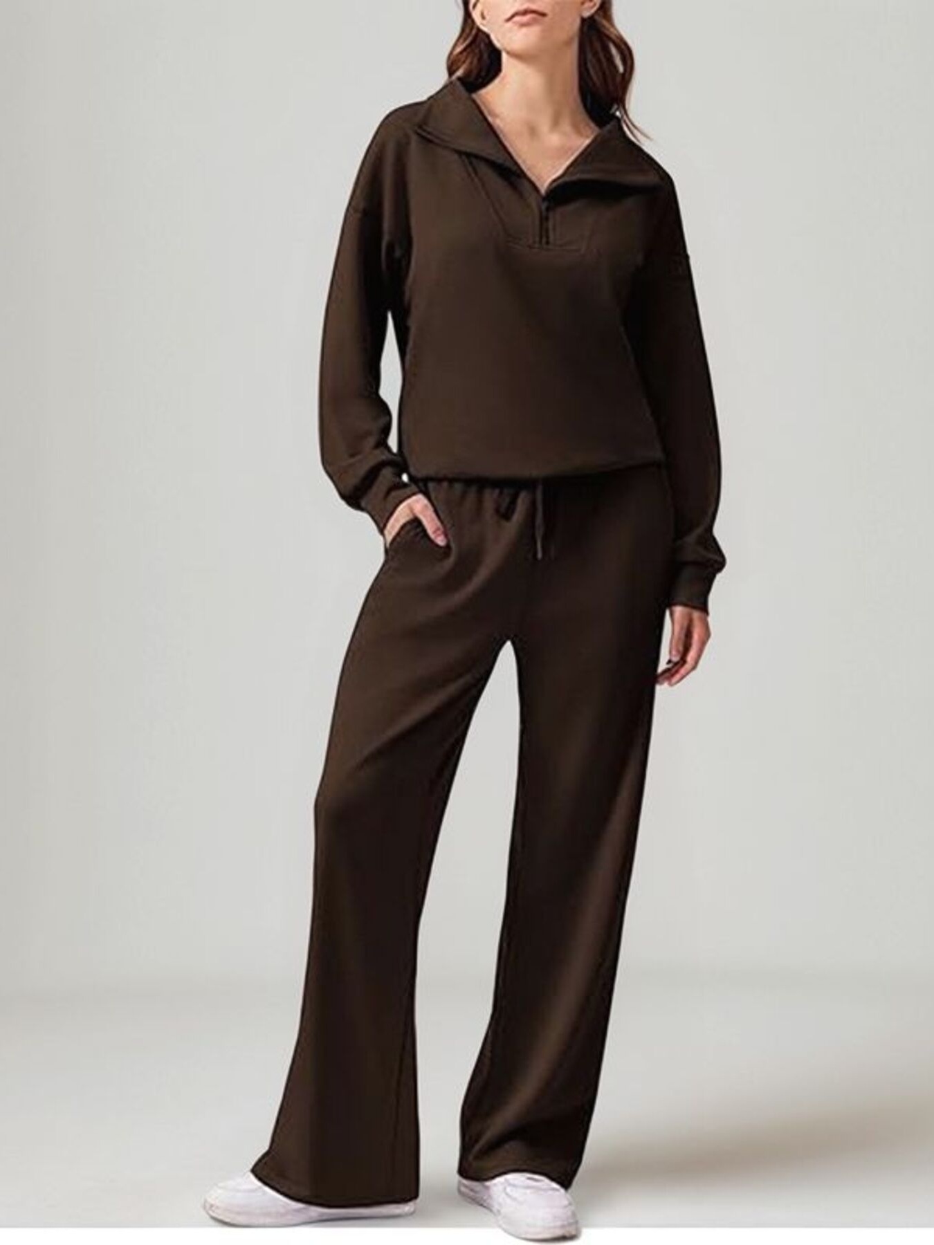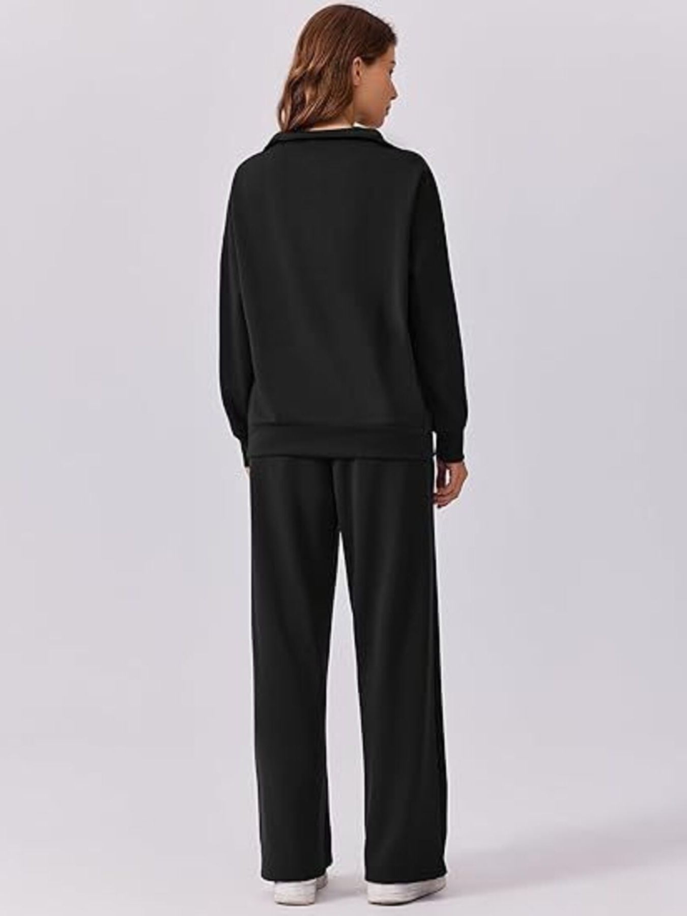 Relaxed Fit Quarter-Zip Top And Pants Set