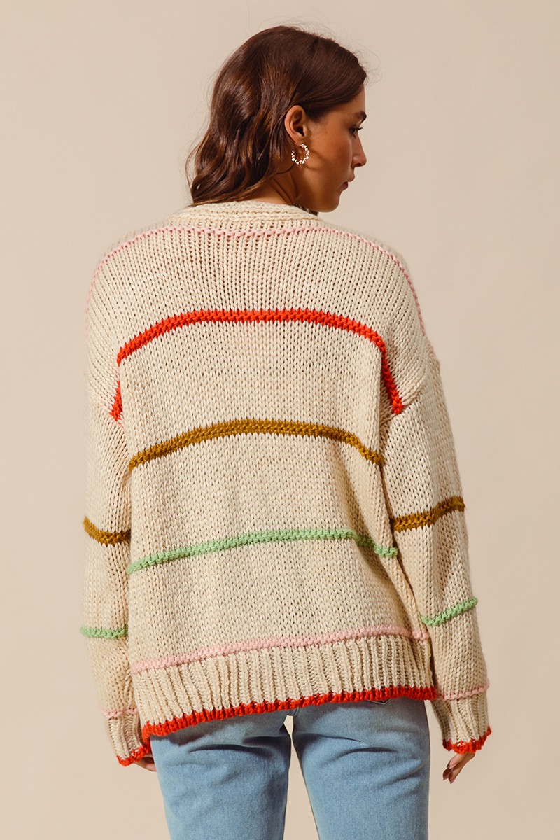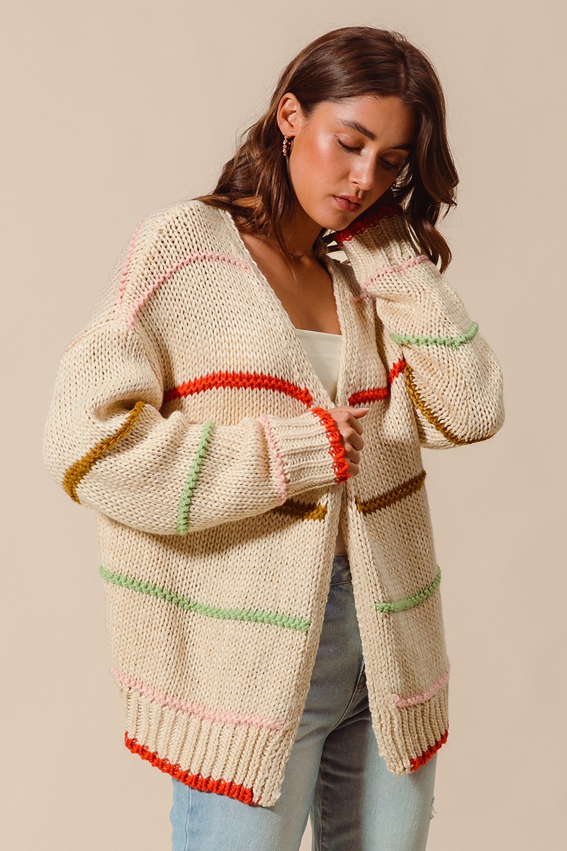 So Me Loose Fit Multi Stripe Open Front Cardigan