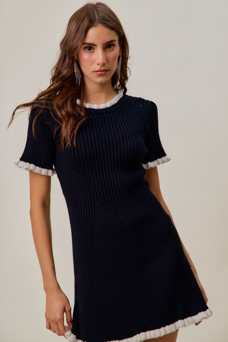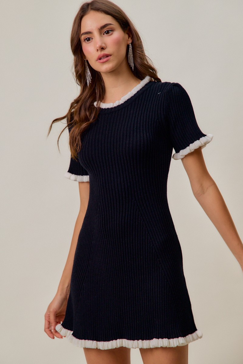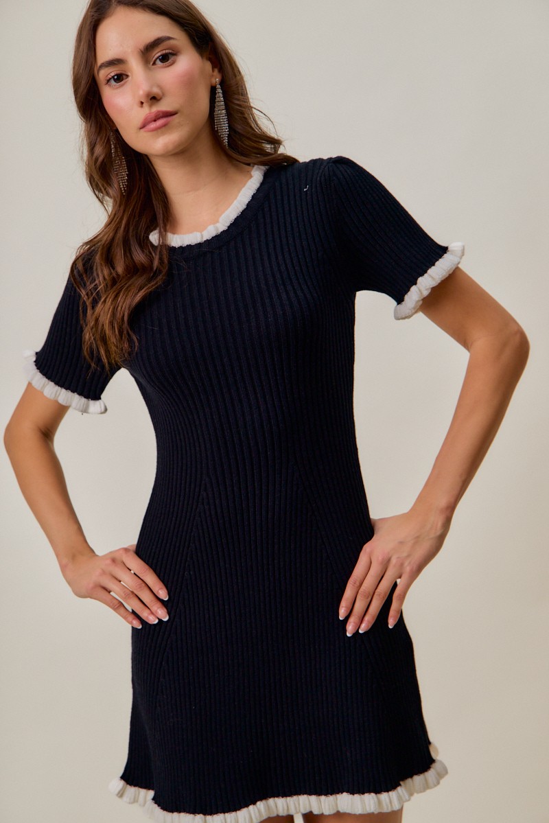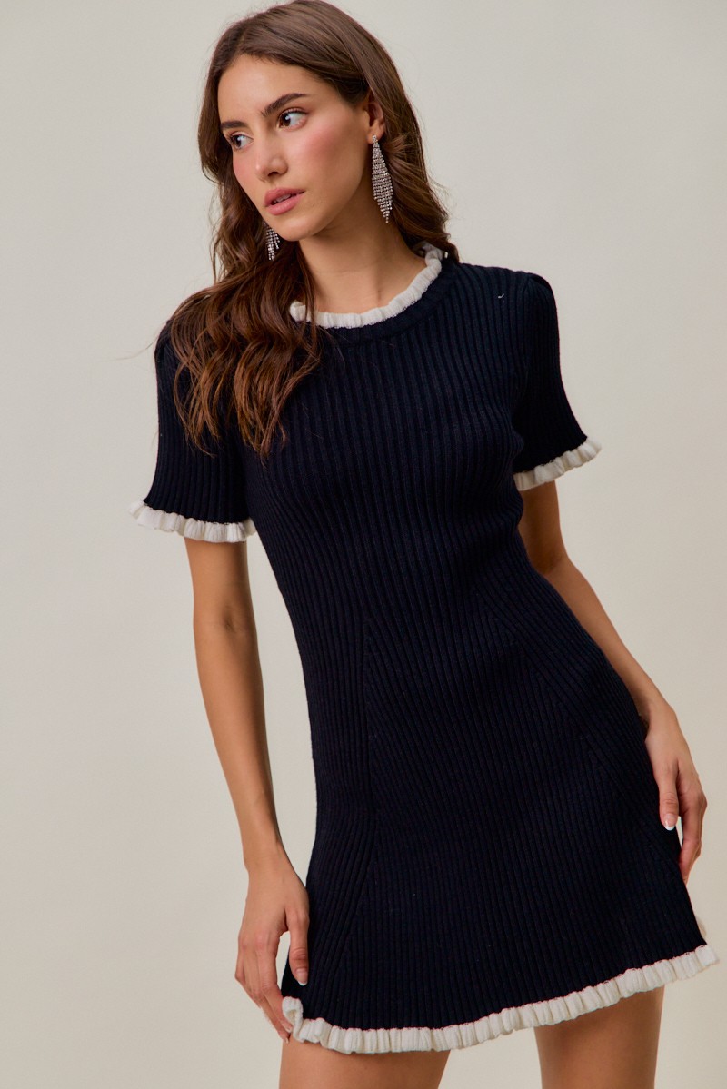 So Me Contrast Ruffled Sweater Knit Mini Dress