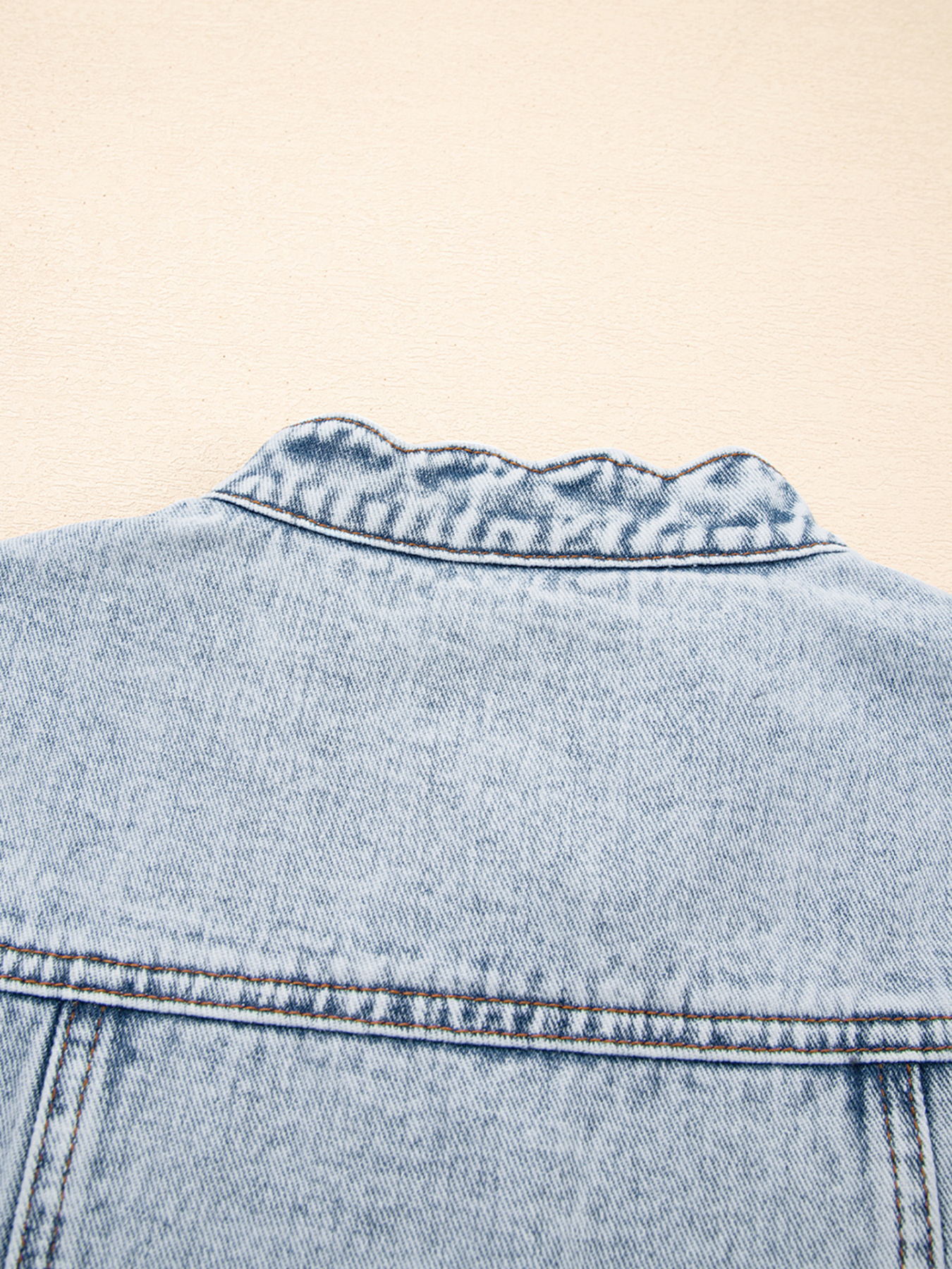 Scalloped Trim Patch Pocket Button Front Denim Vest