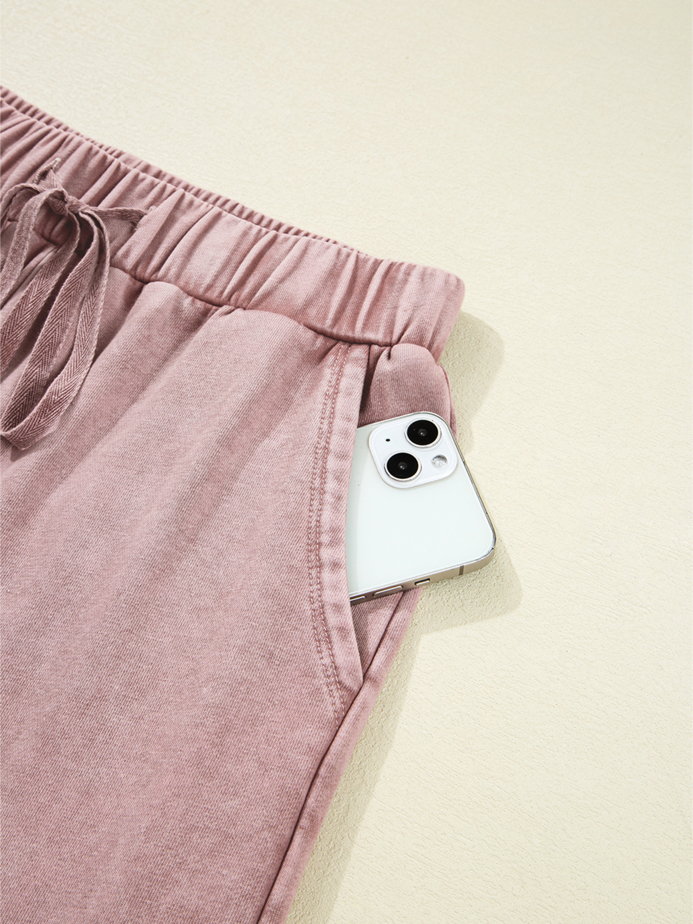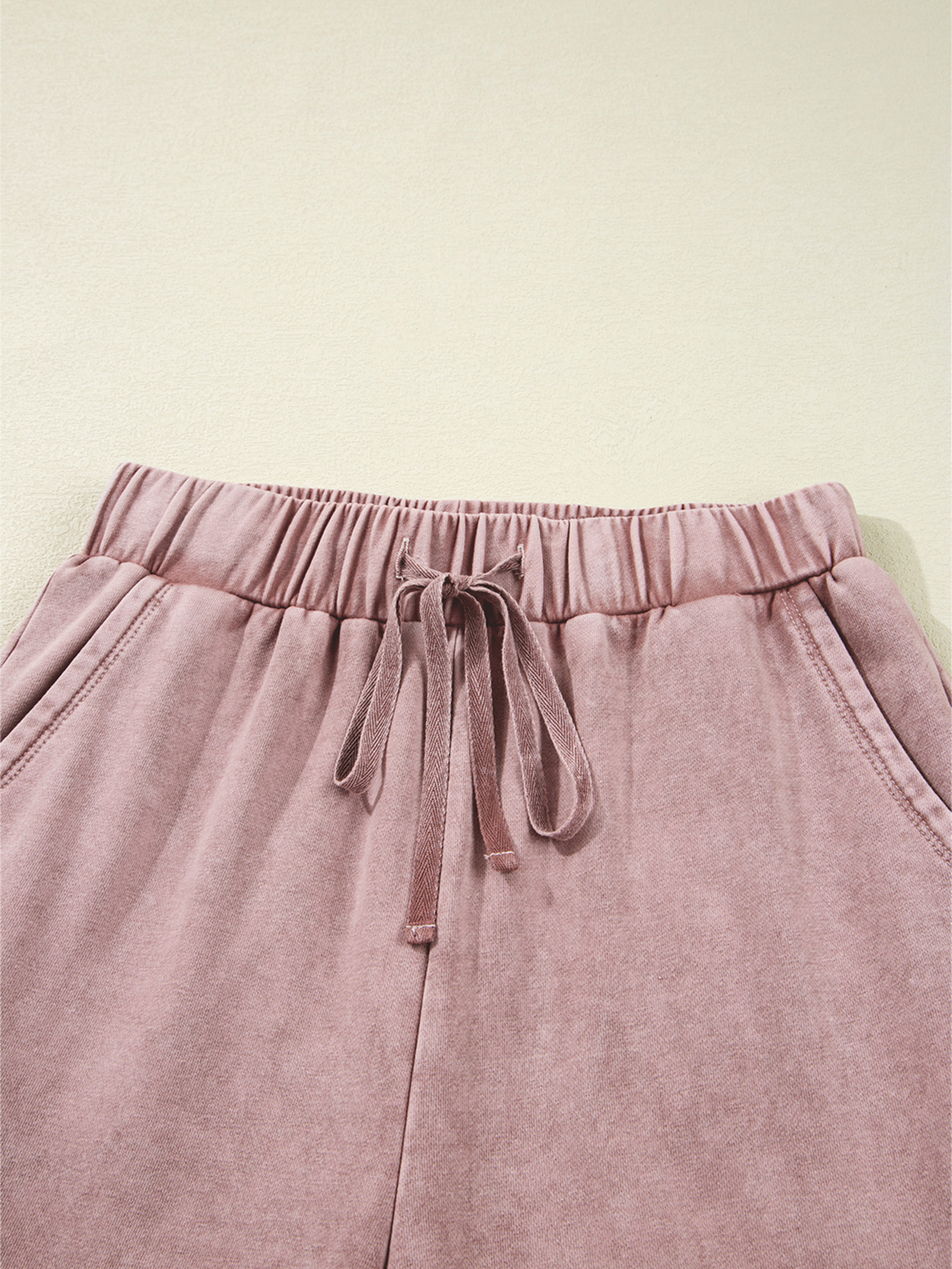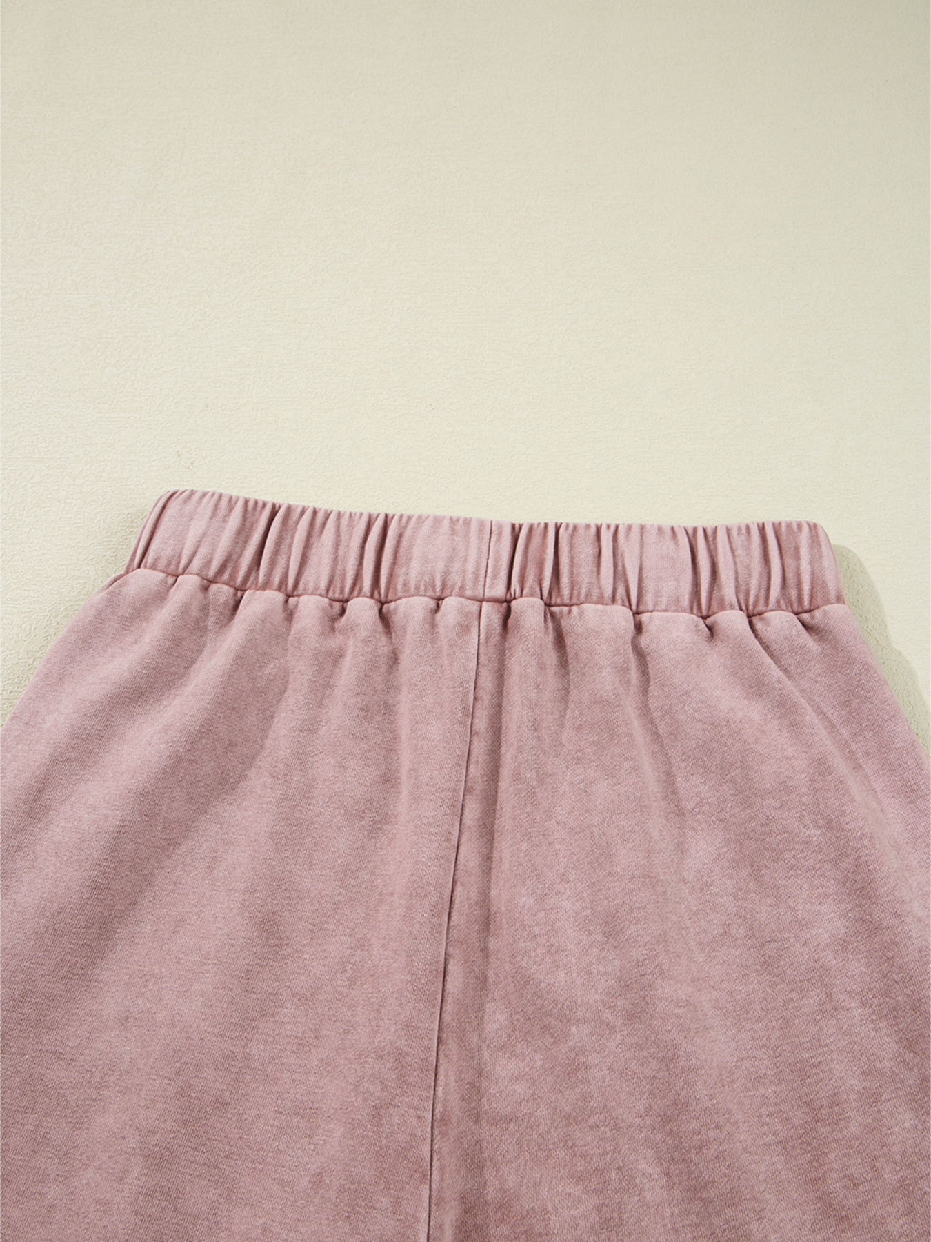 Mineral Wash Tiered Wide Leg Patchwork Drawstring Pants